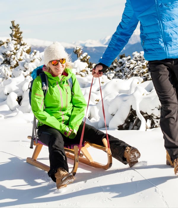 RodelnRodeln am Ritten ist Erlebnis pur für die ganze Familie. Die hervorragend präparierte Rittner Naturrodelbahn am Rittner Horn ist 5,5 km lang und führt über sanfte Almen und abenteuerliche Waldstücke. Start ist bei der Schwarzseepitze, dann geht es runter in Richtung Unterhorn und dann links ab über die Schönalm bis zur Talstation in Pemmern. Wer nach der ersten Abfahrt nicht genug hat, kann zu Fuß oder mit der Bahn gleich wieder nach oben starten.