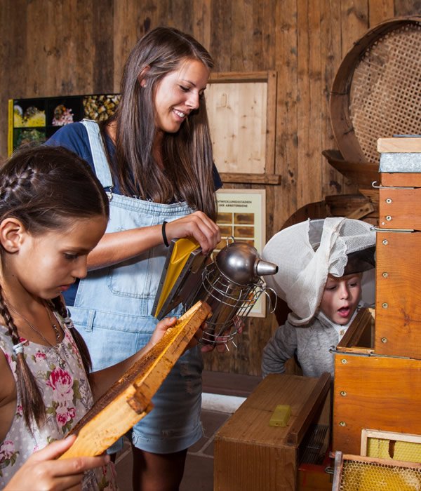 Das BienenmuseumSumm, summ, summ! Wandern Sie von unserem Hotel in nur zehn Minuten zum Bienenmuseum in Wolfsgruben. Angesiedelt im 600 Jahre alten Plattner-Hof, einem malerischen Gehöft, das die Bozner Kaufmannsfamilie Gramm in den 70er Jahren vorbildlich saniert hat. Seither ist im Plattner-Hof ein Bienenmuseum mit historischen Imkereigegenständen untergebracht. Auch der original erhaltene Wohntrakt des Hofes kann besichtigt werden. Im Freigelände wurde ein Lehrpfad angelegt und Sie können die Bienenstände, den Bauerngarten und den Teich sowie alte Kulturpflanzen besichtigen.